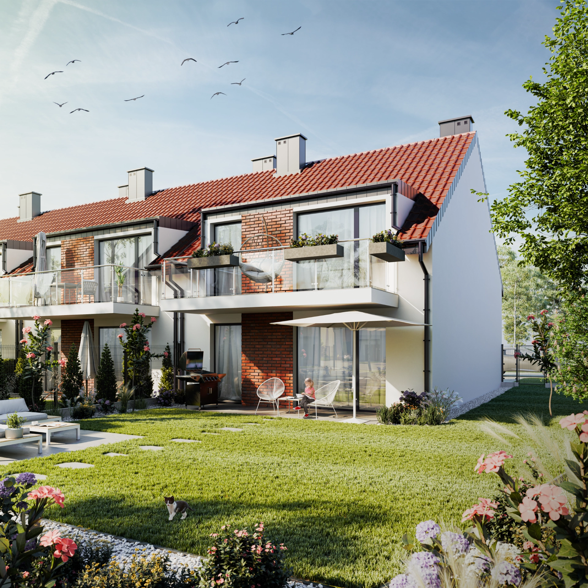 W ofercie dostępne są dwa typy mieszkań, odpowiadające różnym potrzebom mieszkańców. Lokale na parterze z własnym ogrodem doskonale sprawdzą się dla rodzin z dziećmi, osób starszych oraz wszystkich, którzy marzą o codziennym kontakcie z zielenią. Lokale na piętrze to propozycja dla tych, którzy cenią widoki, prywatność i dodatkową przestrzeń – każdy z nich posiada przestronny balkon oraz dostęp do nieużytkowego strychu, który można zaadaptować według własnych potrzeb.